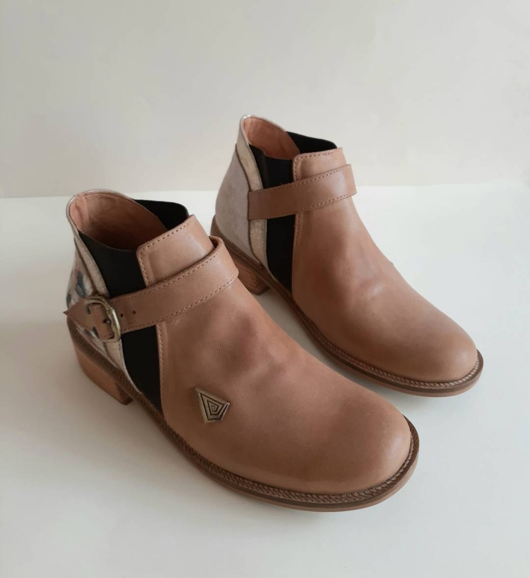 Leather boots made by hand, exclusive design, with combination of colors and textures. Elegant and trendy. Hand painted ART made by Carolina. Our Shoes are handmade by experts handcrafters, caring for every detail. We pick exclusive and unique leathers, hand painetd by Carolina.