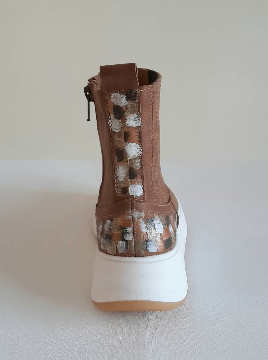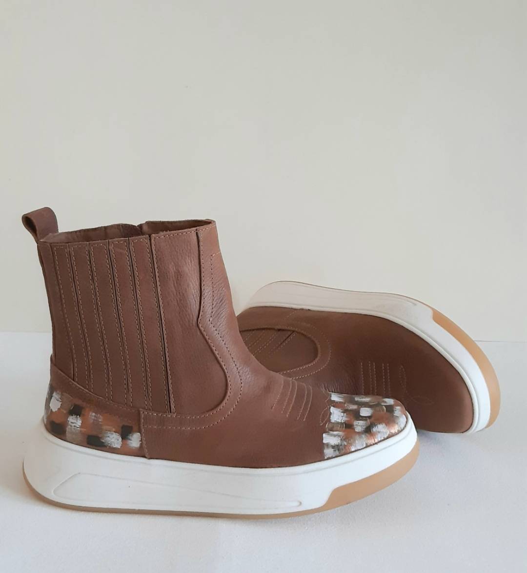 Exclusive leather boots. Completely white leather, hand painted by Carolina.