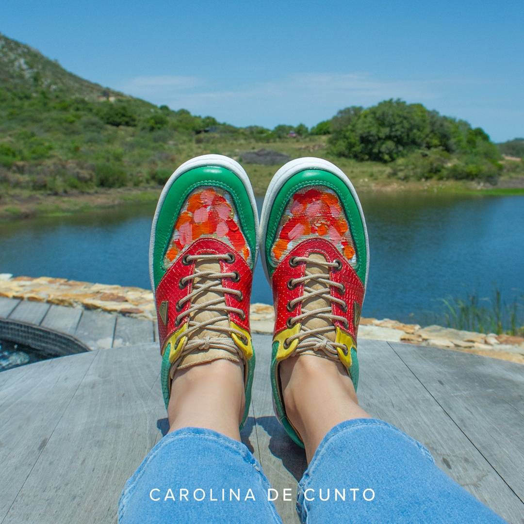 Leather walking shoes made by hand, exclusive design, with combination of colors and textures. Elegant and trendy shoes. Hand painted ART made by Carolina. Our Shoes are handmade by experts handcrafters, caring for every detail. We pick exclusive and unique leathers, hand painetd by Carolina.