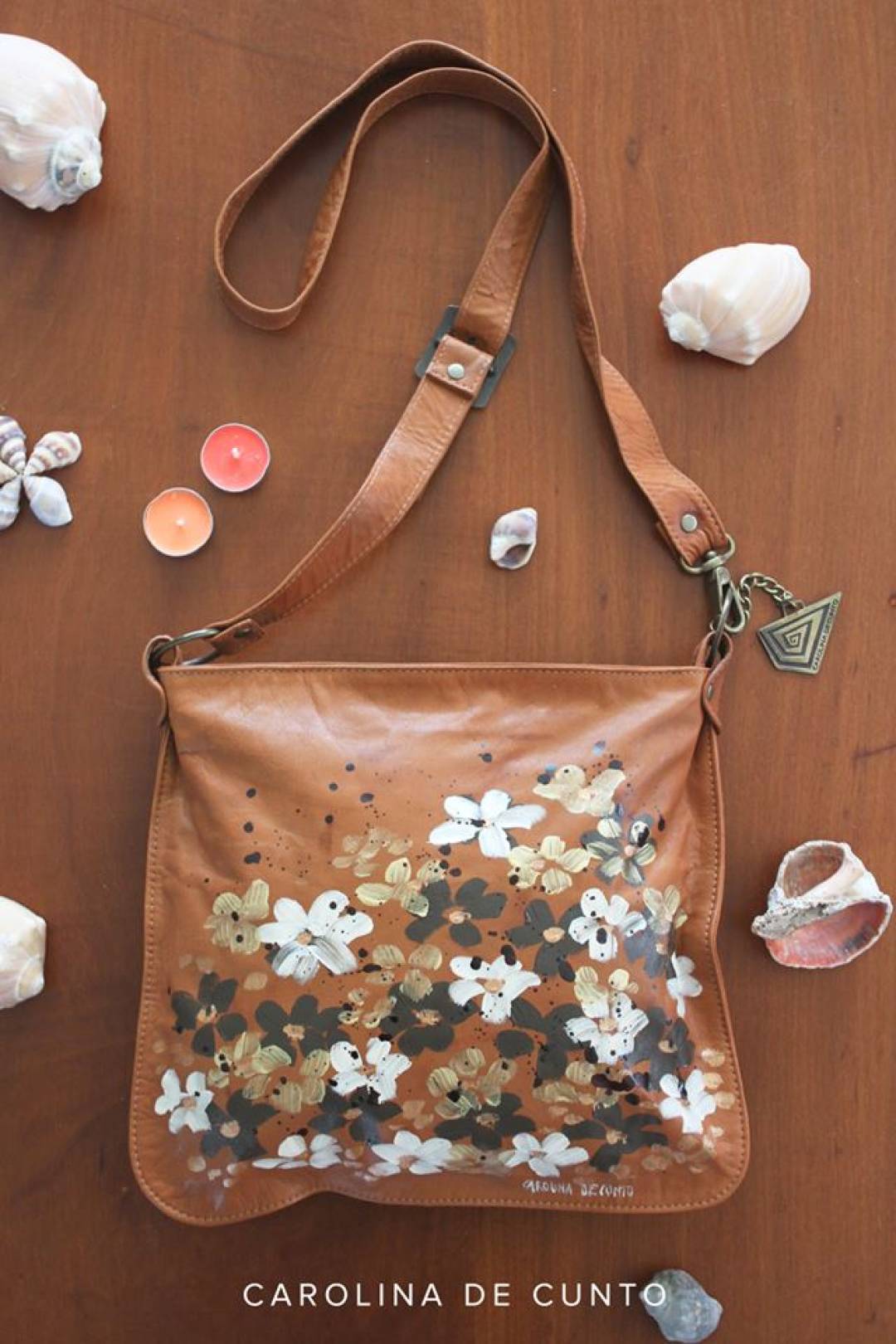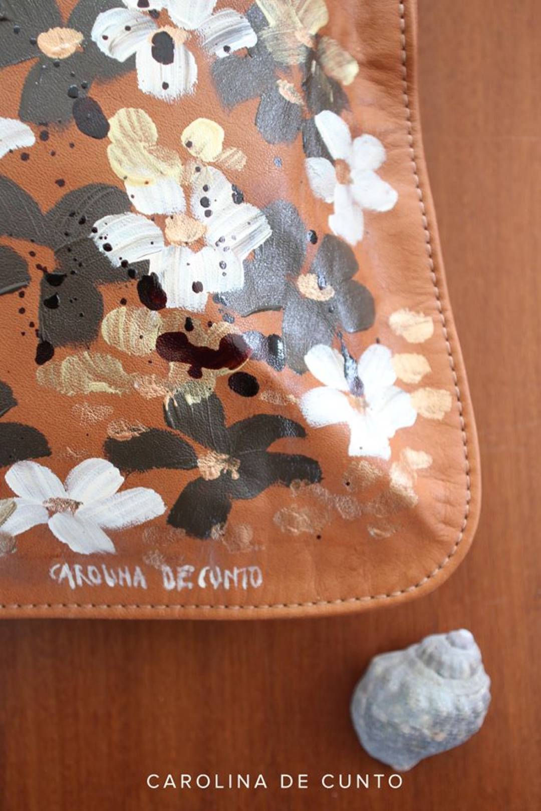 - Available color: Finished terracota color bag with tan patina leather, hand painted flowers made by Carolina.