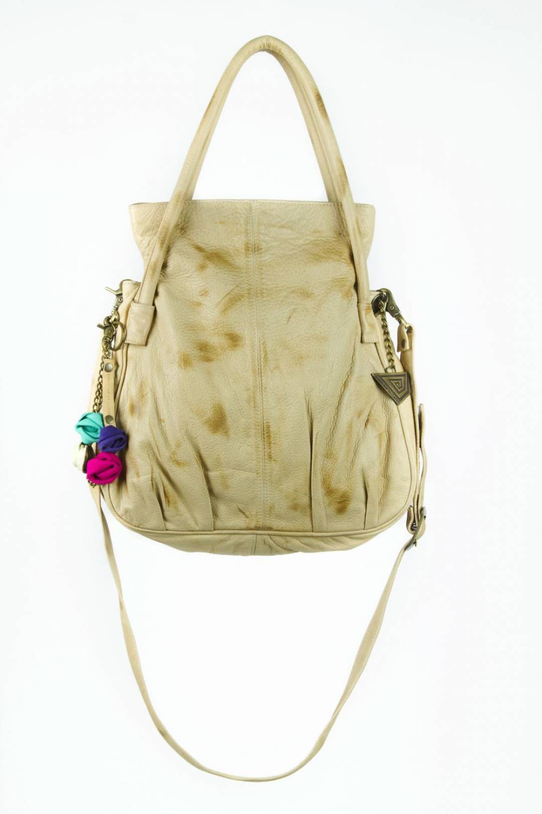 - Fixed to handles and strap for shoulder or cross body wear, 10 1/2" short drop, 24 1/2" long drop