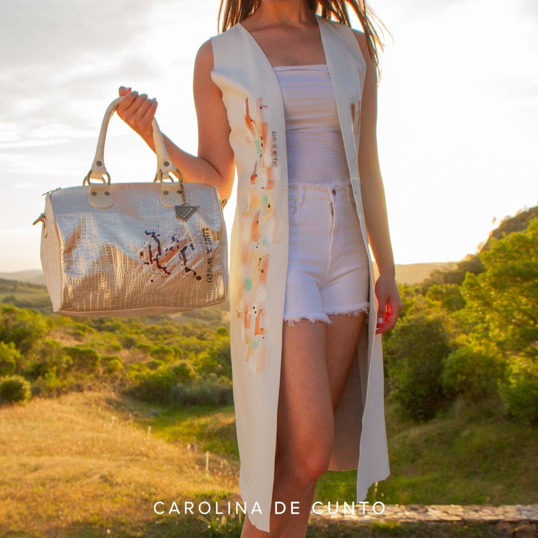 Art to wear. Leather vest with hand painted art by Carolina De Cunto in turquoise color. Handmade taking care of every detail, selected uruguayan leathers of superior quality.