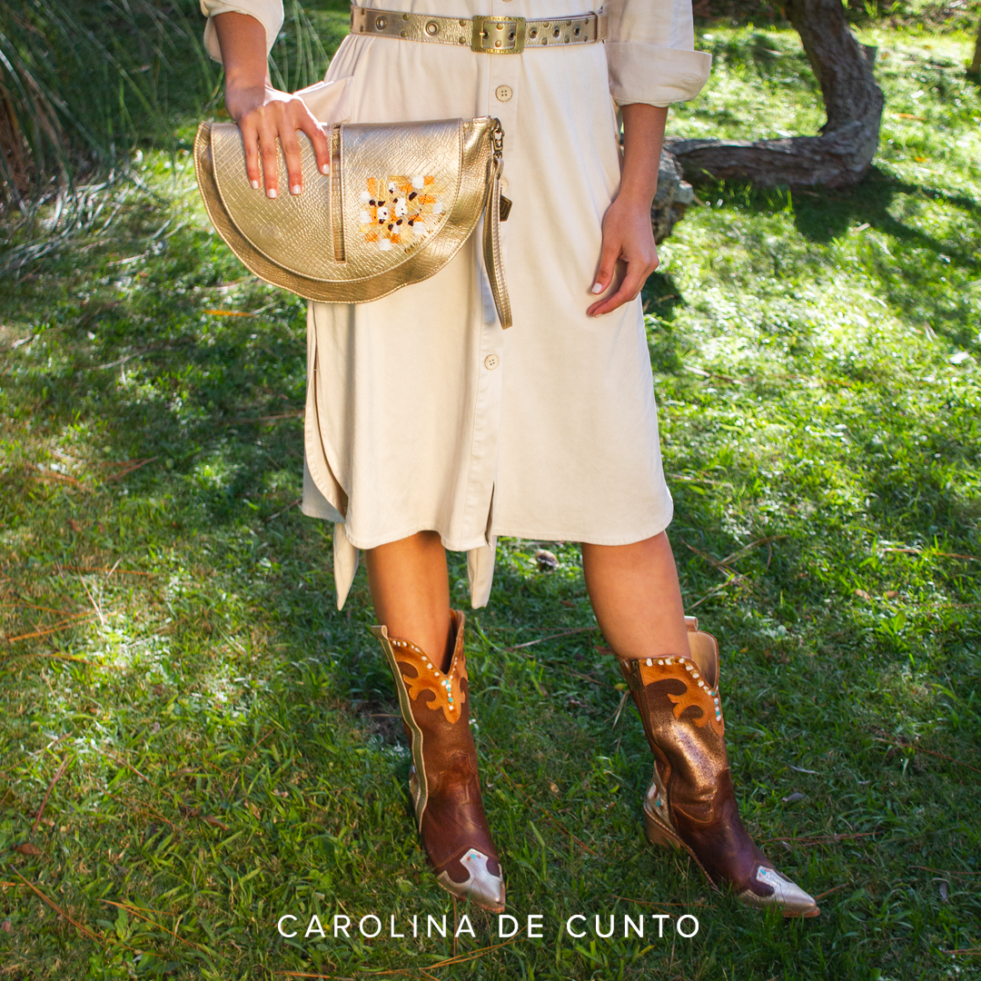 The Carolina De Cunto monogram in metal is our quality signature of a handmade bag Made in Uruguay.