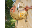 Check this elegnat and vibrant hand clutch for formal or casual wear. Gold textured leather, hand painted detail, painted by Carolina.