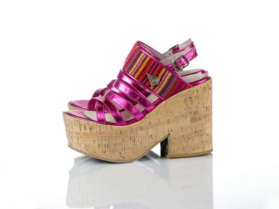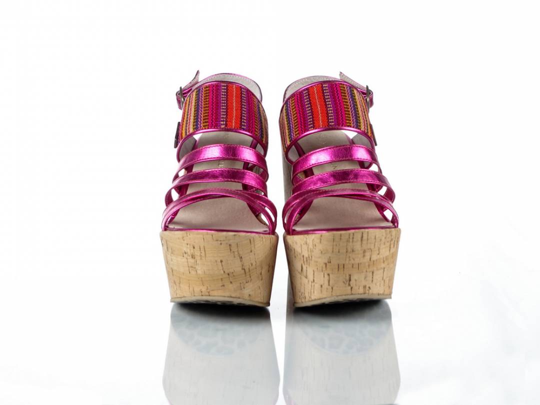 Color: Calfskin-pathent fuchsia leather and aguayo fabric.