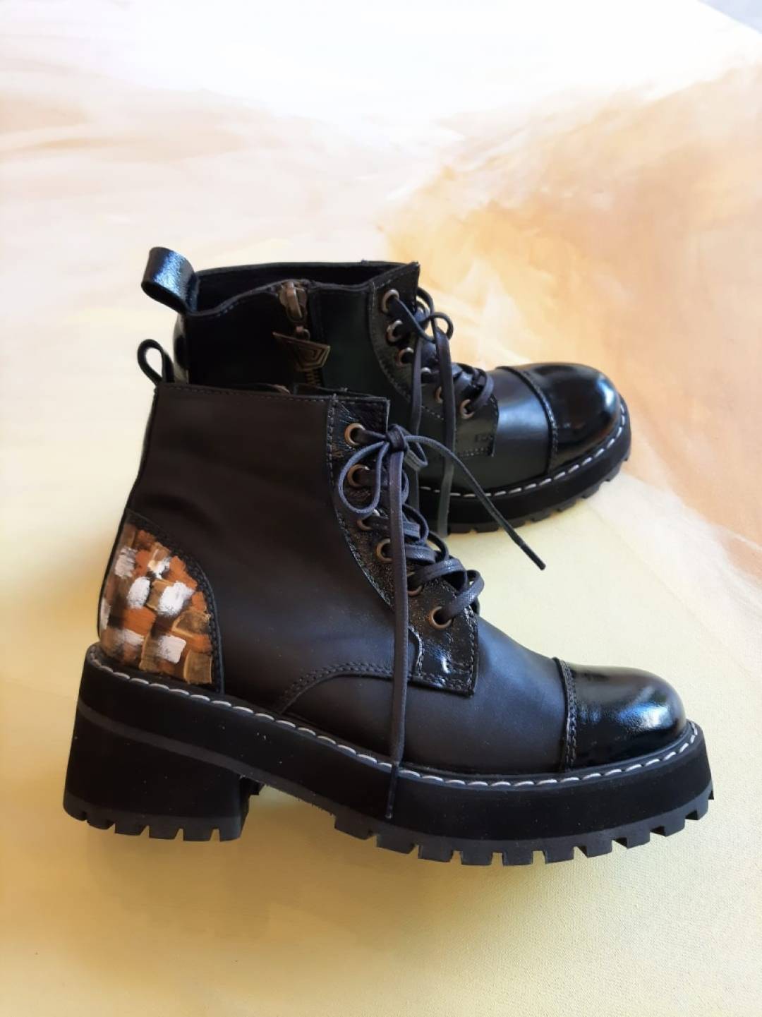 Leather boots made by hand, exclusive design with handpainted detail. Elegant and trendy shoes. Hand painted ART made by Carolina. Our Boots are handmade by experts handcrafters, caring for every detail. We pick exclusive and unique leathers, hand painetd by Carolina.