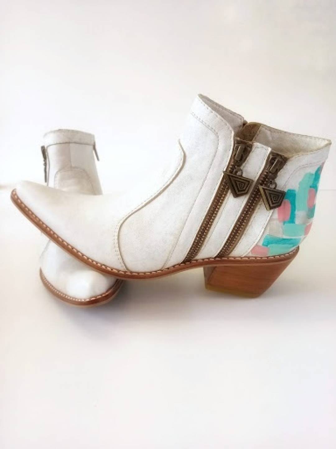 Exclusive leather boots. Completely white leather, hand painted by Carolina.