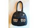 - Available color: Black leather with detail of handpainted art at front. Animal print leather pockets.