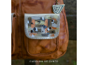 - Available color: Super soft terracotta color with tan patina finish. Silver pockets with hand made art made by Carolina.