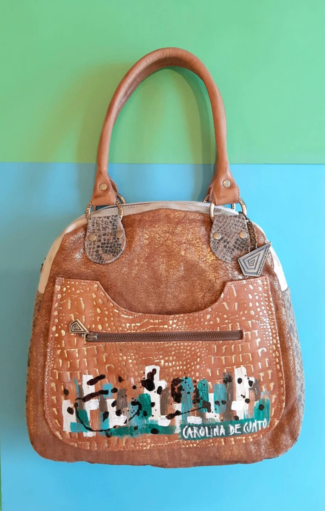 The Carolina De Cunto monogram in metal is our quality signature of a handmade bag made in Uruguay.