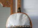 - Available color: Terracotta leather with tan patina. Gold and white color leather. Art detail on front.