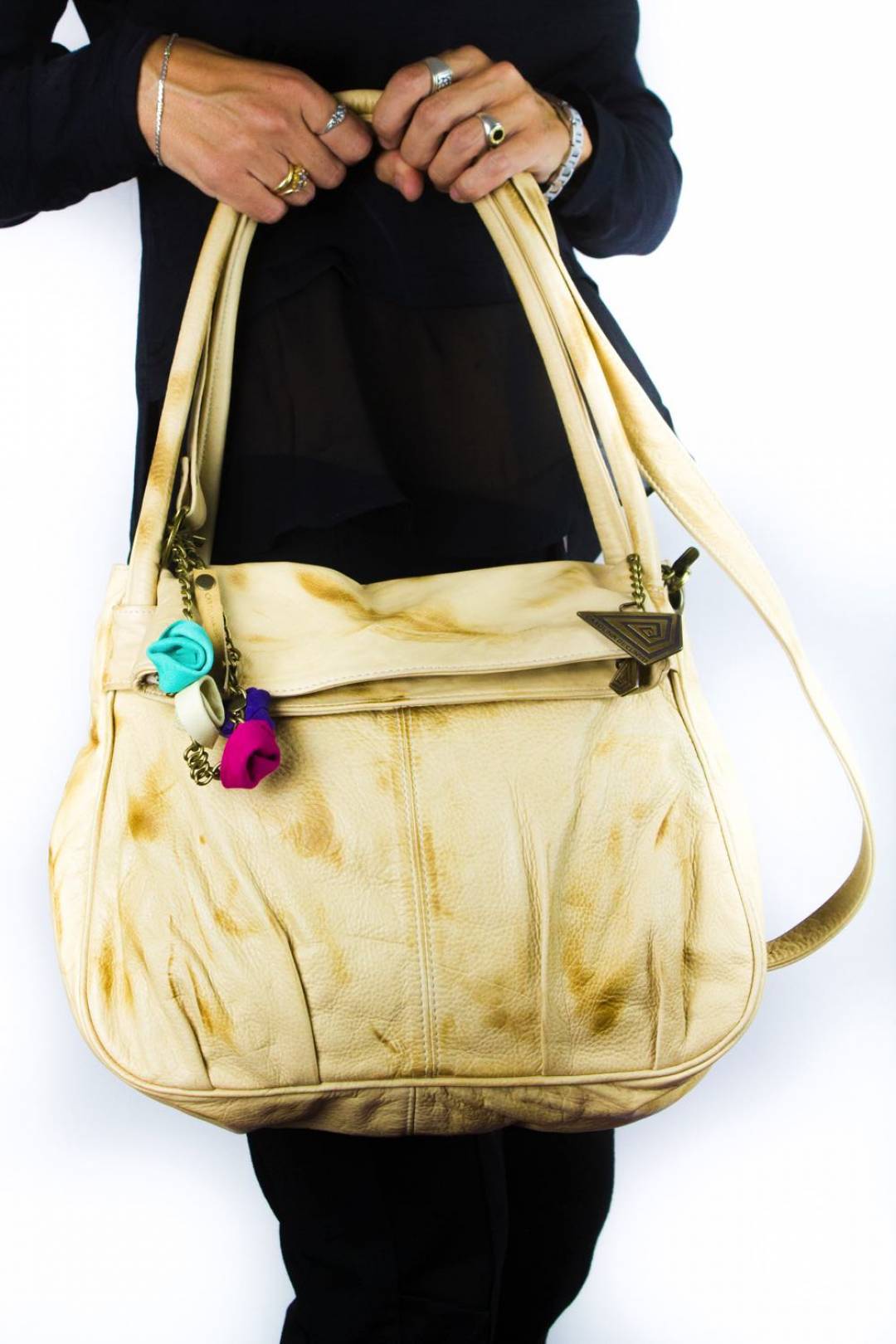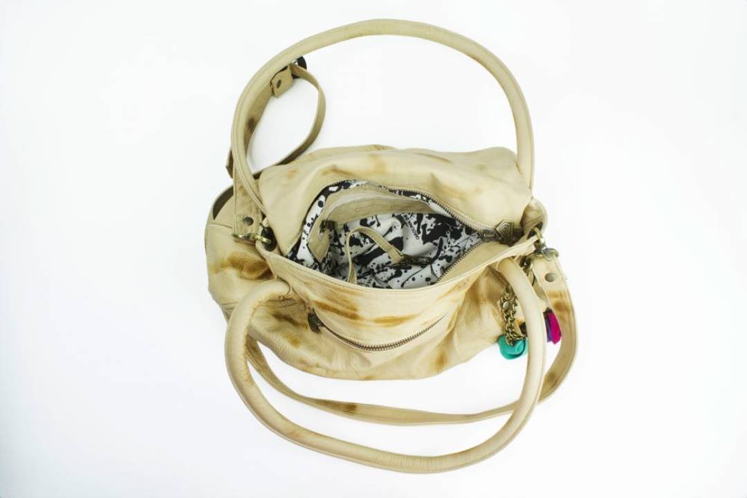 This is the most versatile handbag you can own, with many compartments. Soft leather bag wearable two ways, with short handles as a purse or long as a crossbody bag, top closure with flap makes this bag larger if needed. Comes with a colorful handmade 4 flower decorative tassels to match. Fully lined with Carolina's design pattern fabric.This is 100 % finished top quality, hand made selected bovine leather.