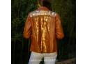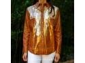 Art to wear. Elegant leather shirt in caramel color hand painted by Carolina de Cunto. Handmade with selected Uruguayan leathers of superior quality.