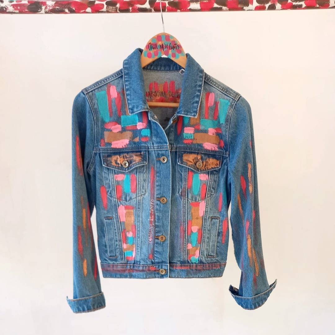 Art to wear. Jeans jacket with handmade art by Carolina De Cunto. Joviality and style in a garmet.