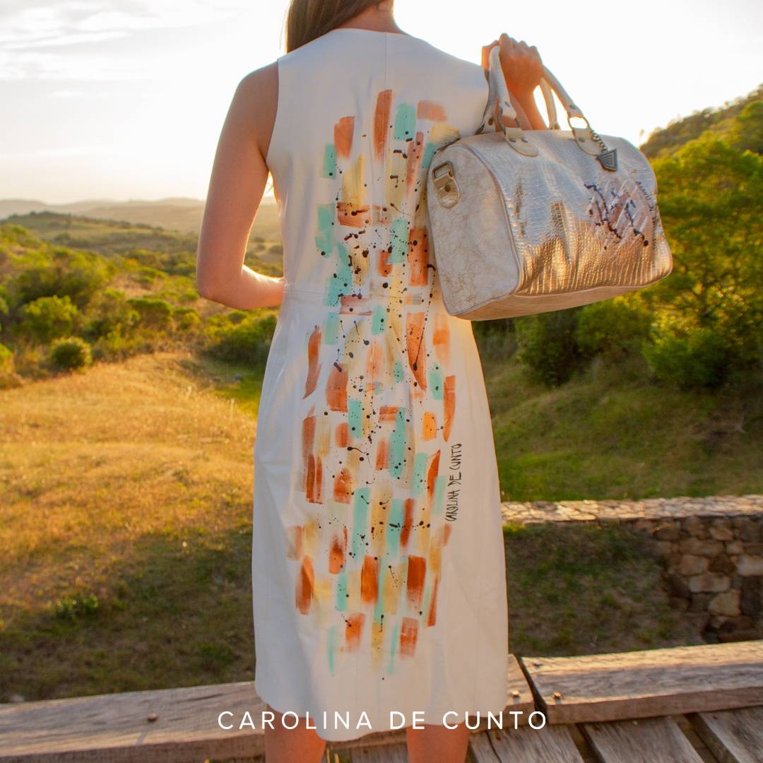 Art to wear. Leather vest with hand painted art by Carolina De Cunto in turquoise color. Handmade taking care of every detail, selected uruguayan leathers of superior quality.