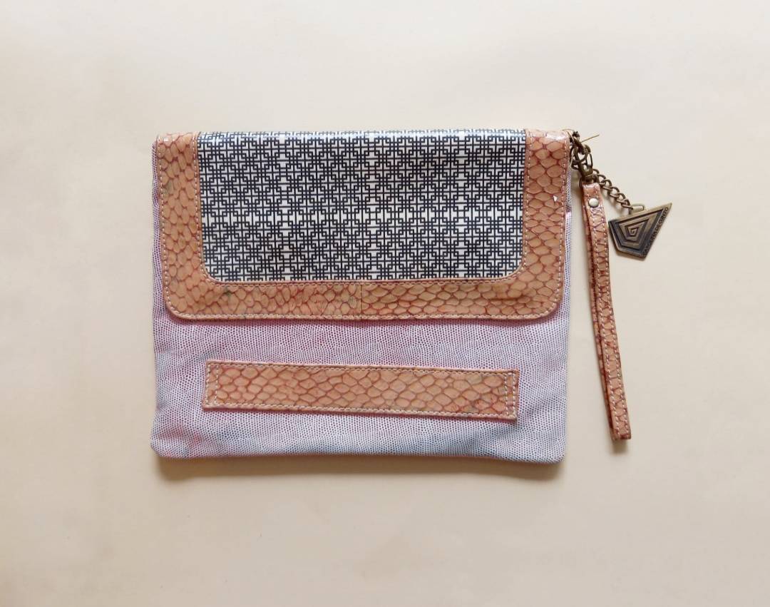 Check this simple line, elegant hand clutch for formal or casual wear in combination of leathers and patterns.